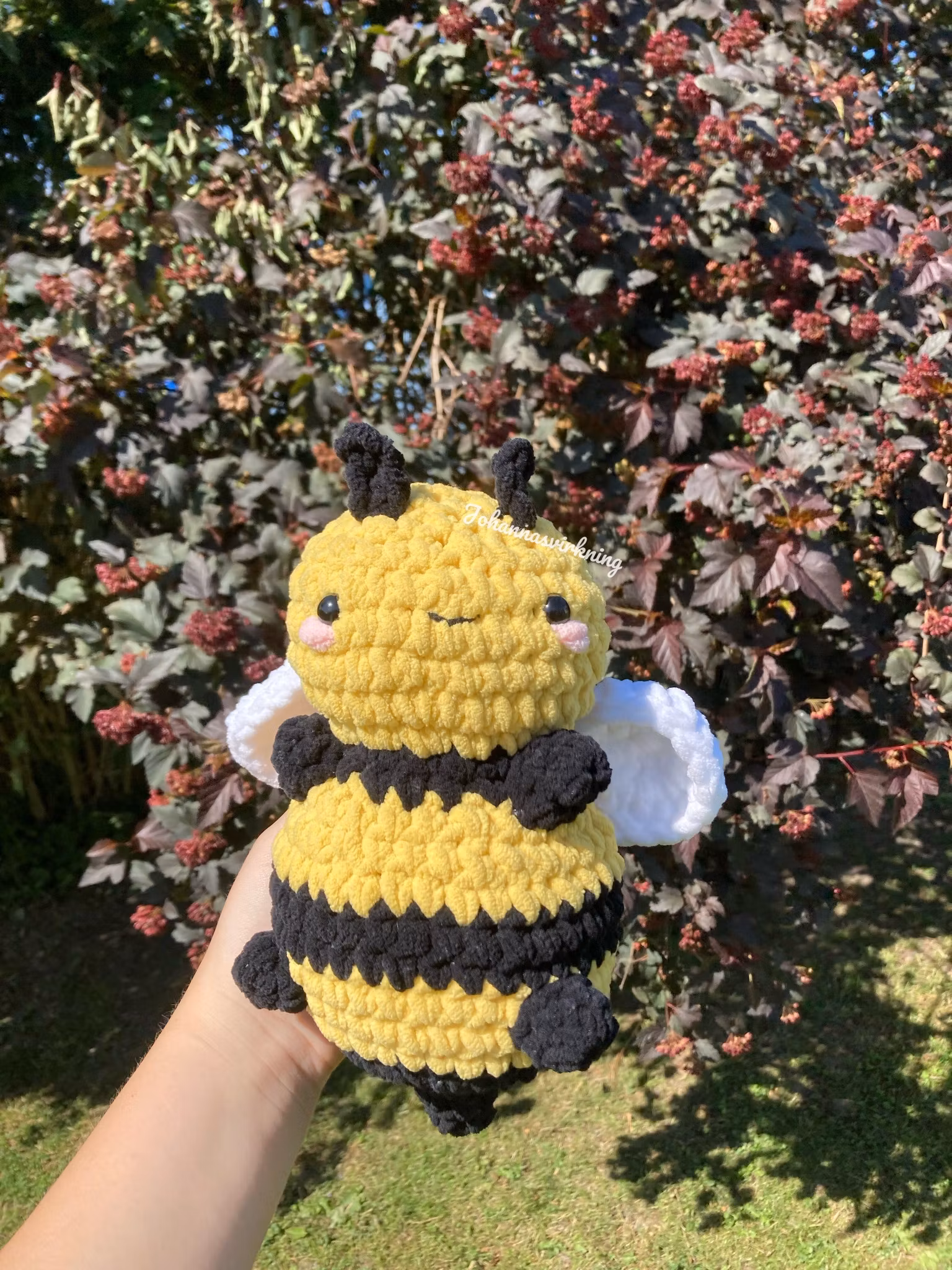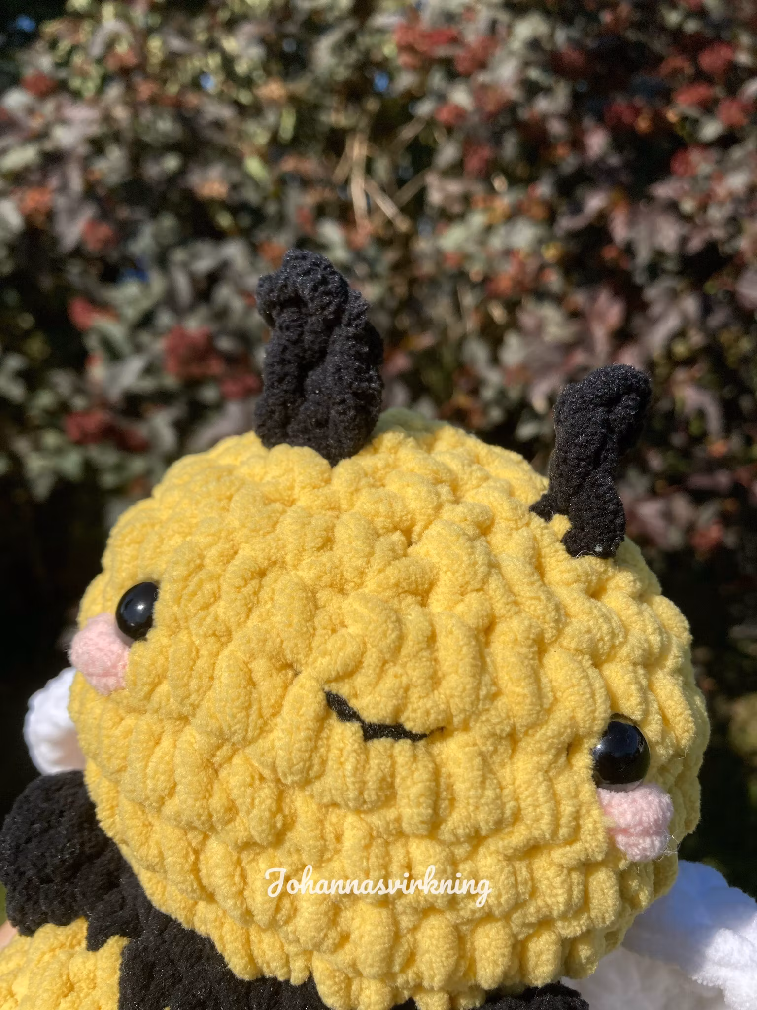 Virkat bi gjord av extra tjockt och mjukt polyester garn, stoppad med polyester stoppning och har säkerhetsögon av plast.