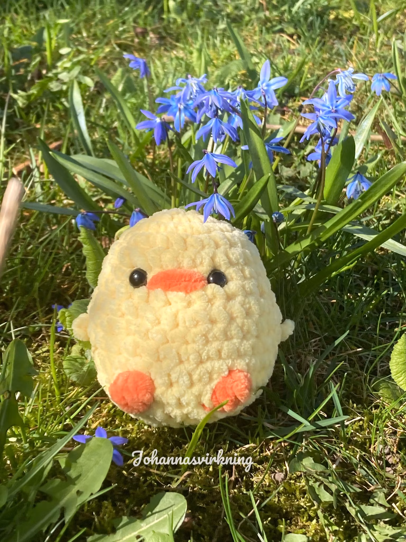 Den här ankan är virkad av mjukt polyester garn, stoppad med polyester och har säkerhetsögon av plast.
