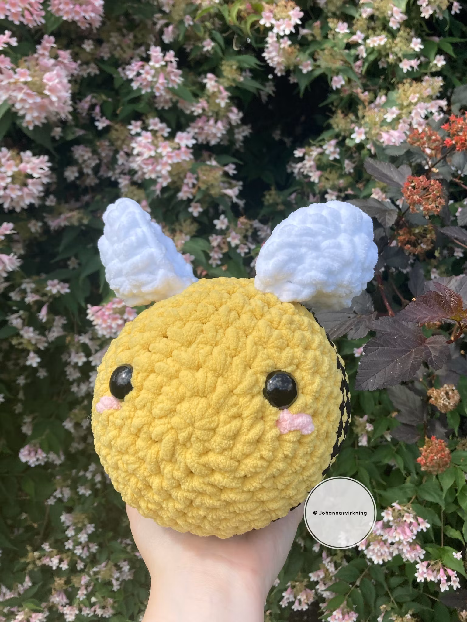 Detta bi är virkad av extra tjockt polyester garn. Den är 25 cm lång och 16 cm hög, Kommer med en namnlapp med ett unikt namn på.