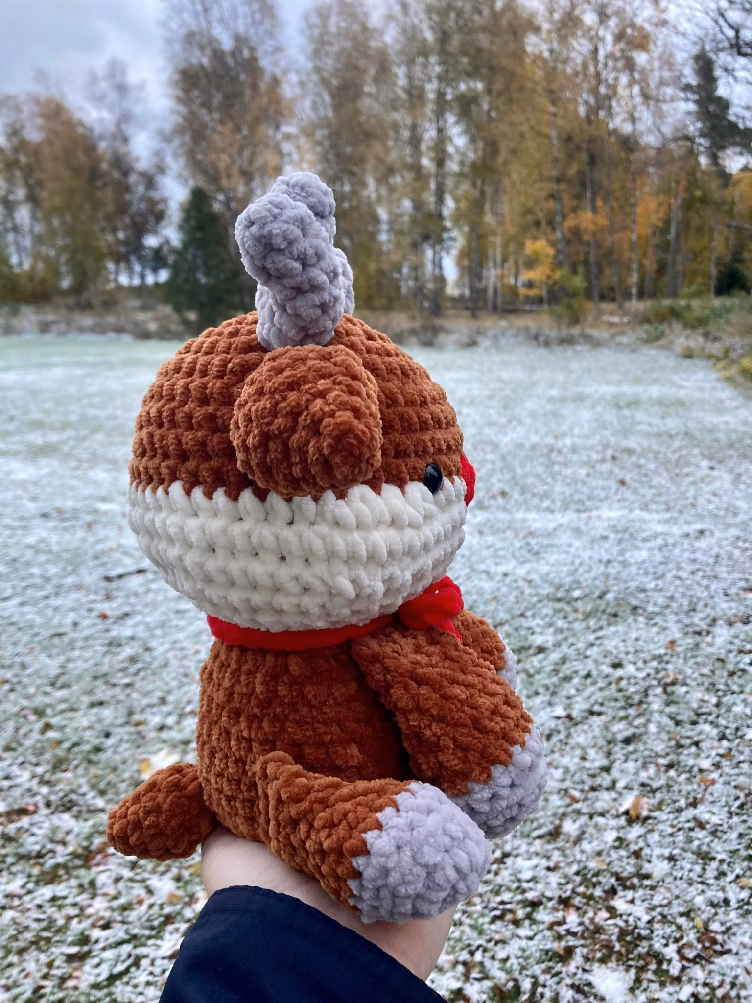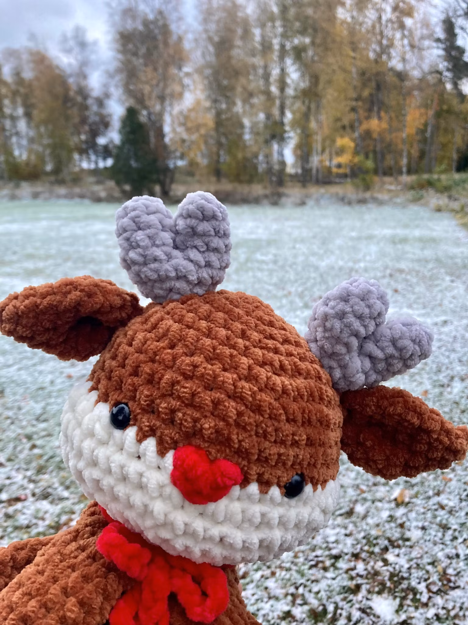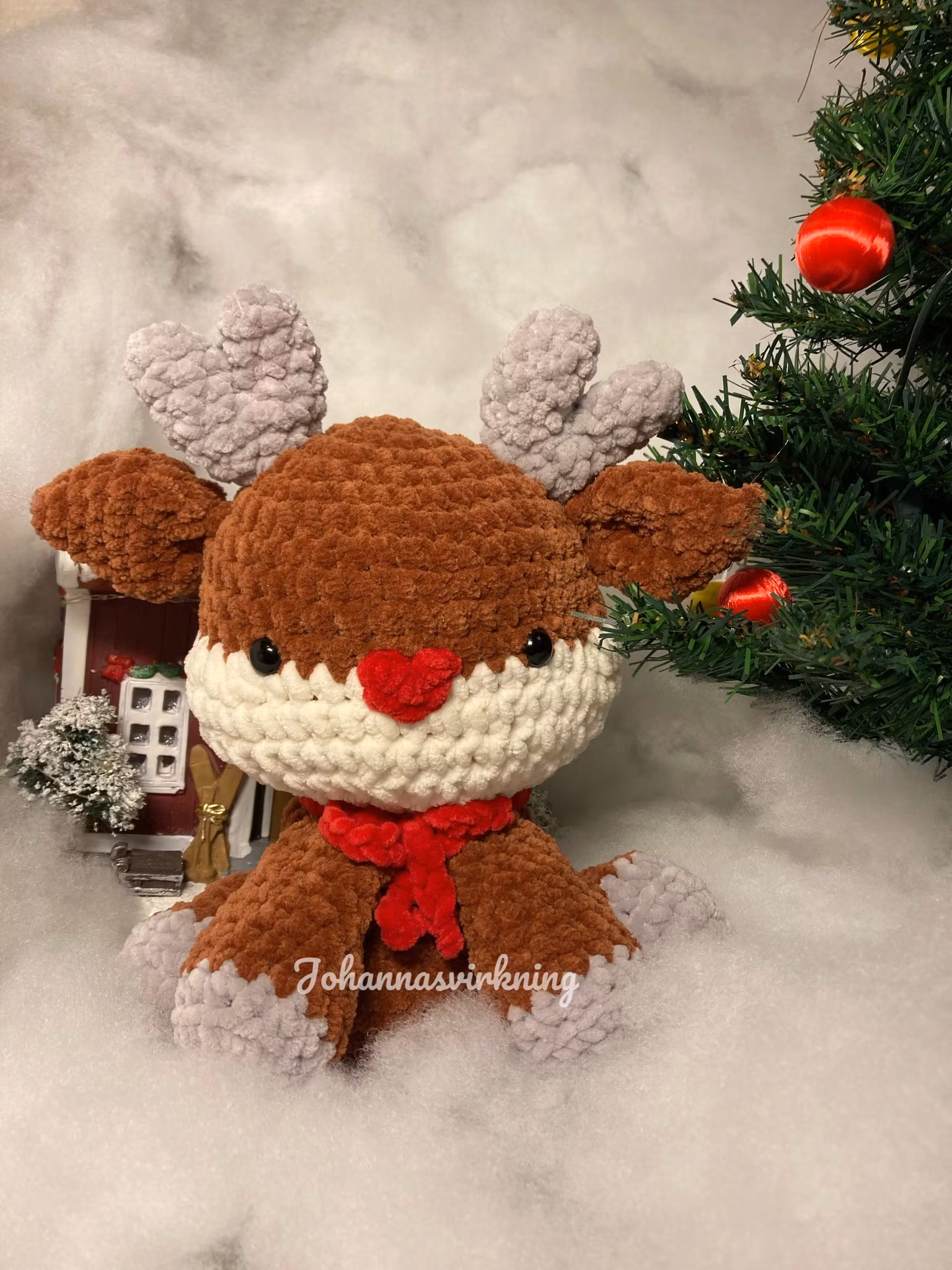 Den här renen är perfekt nu när det börjar bli kallt och julen närmar sig. Den är virkad av mjukt polyester garn, stoppad med polyester och har säkerhetsögon av plast.