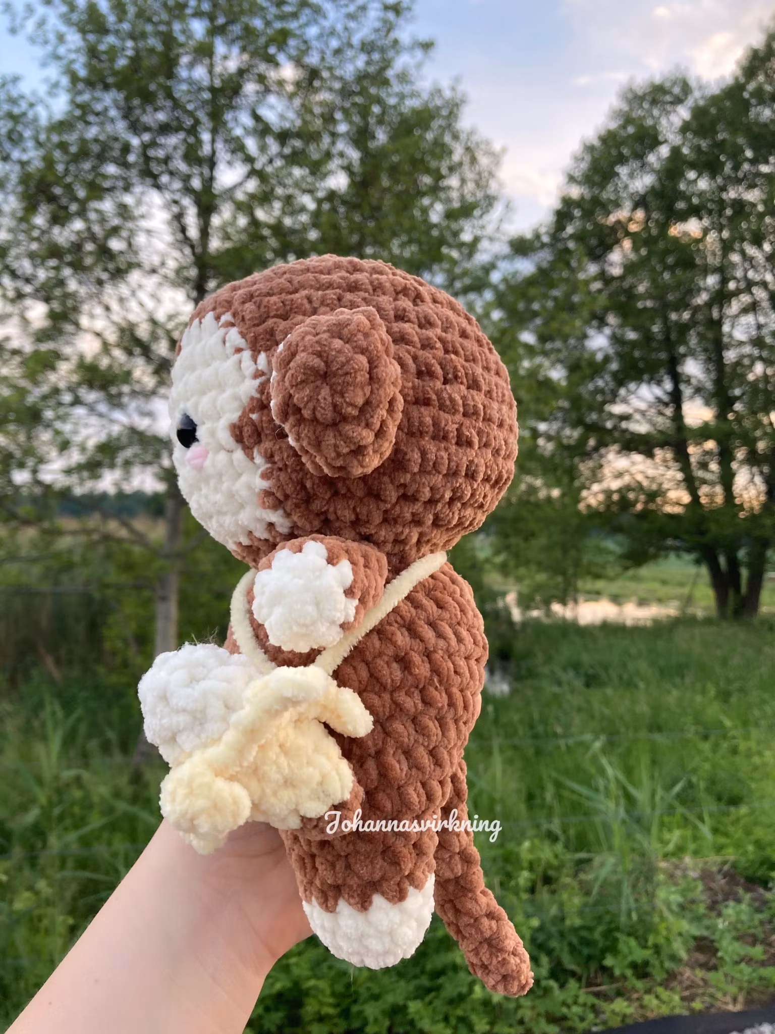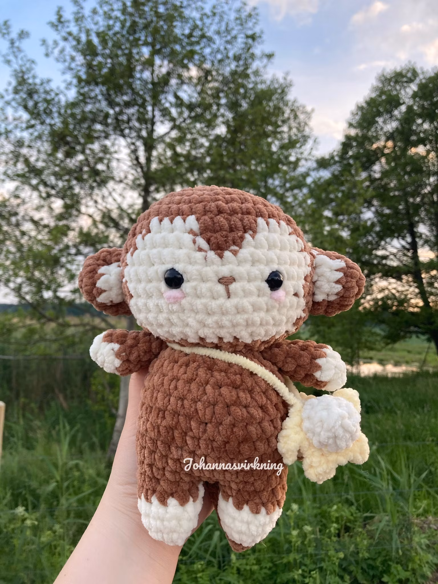 Den här mjuka apan är gjord av polyester garn och kommer med en banan väska.