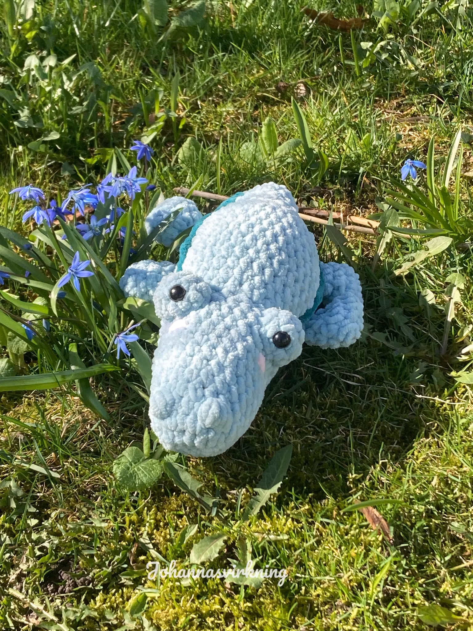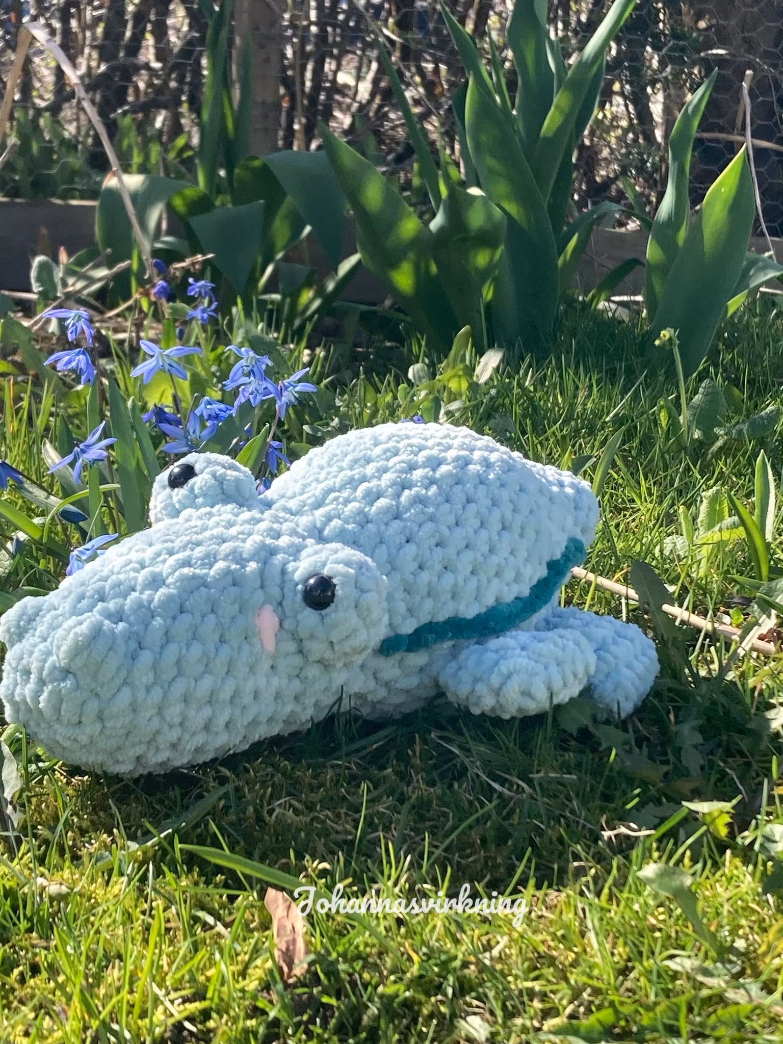 Virkad med polyester garn, stoppad med polyester, säkerhetsögon av plast. Den är 30 cm lång.