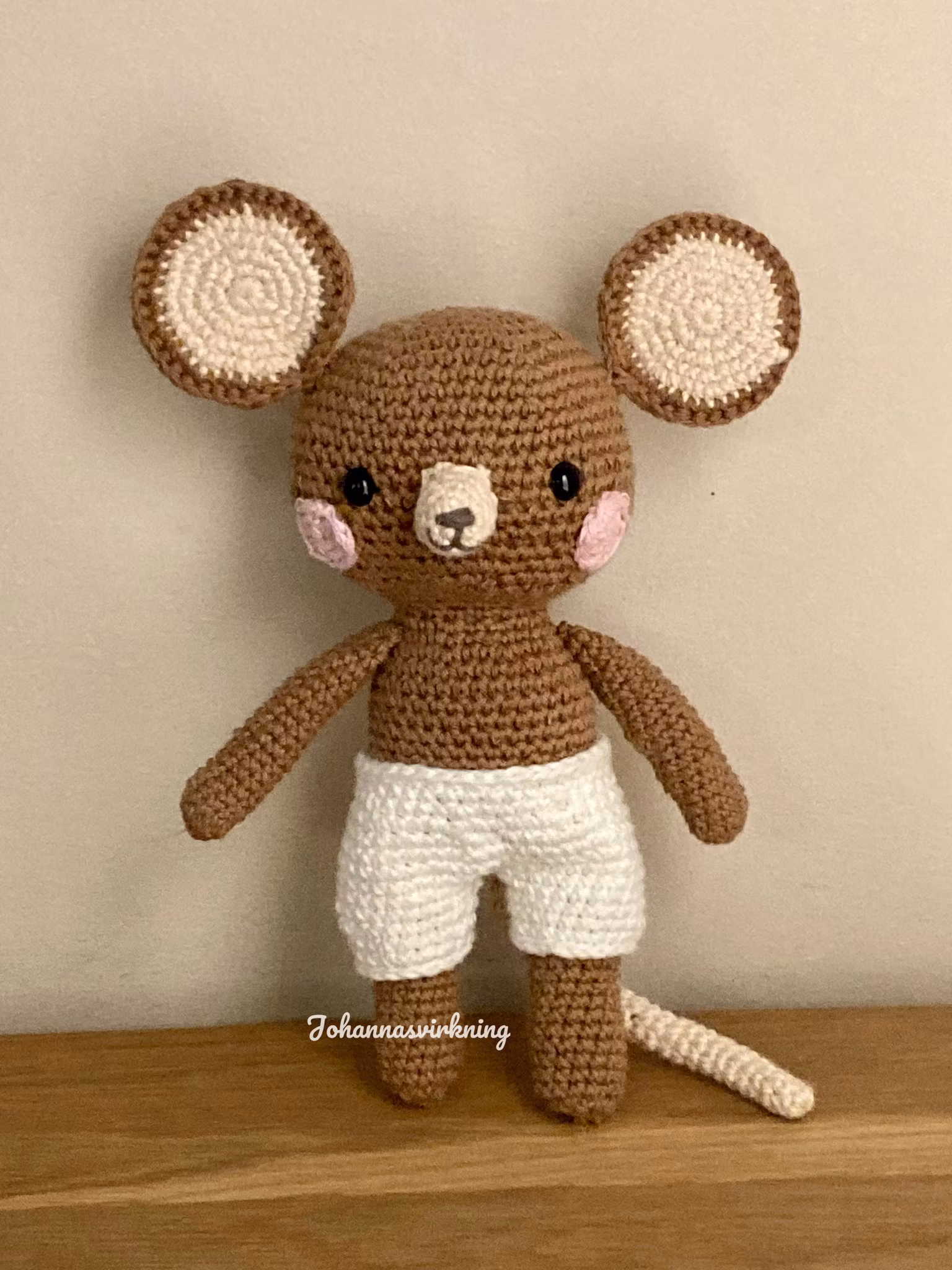 Virkad med 100% bomull garn, stoppad med polyester och har säkerhetsögon av plast.