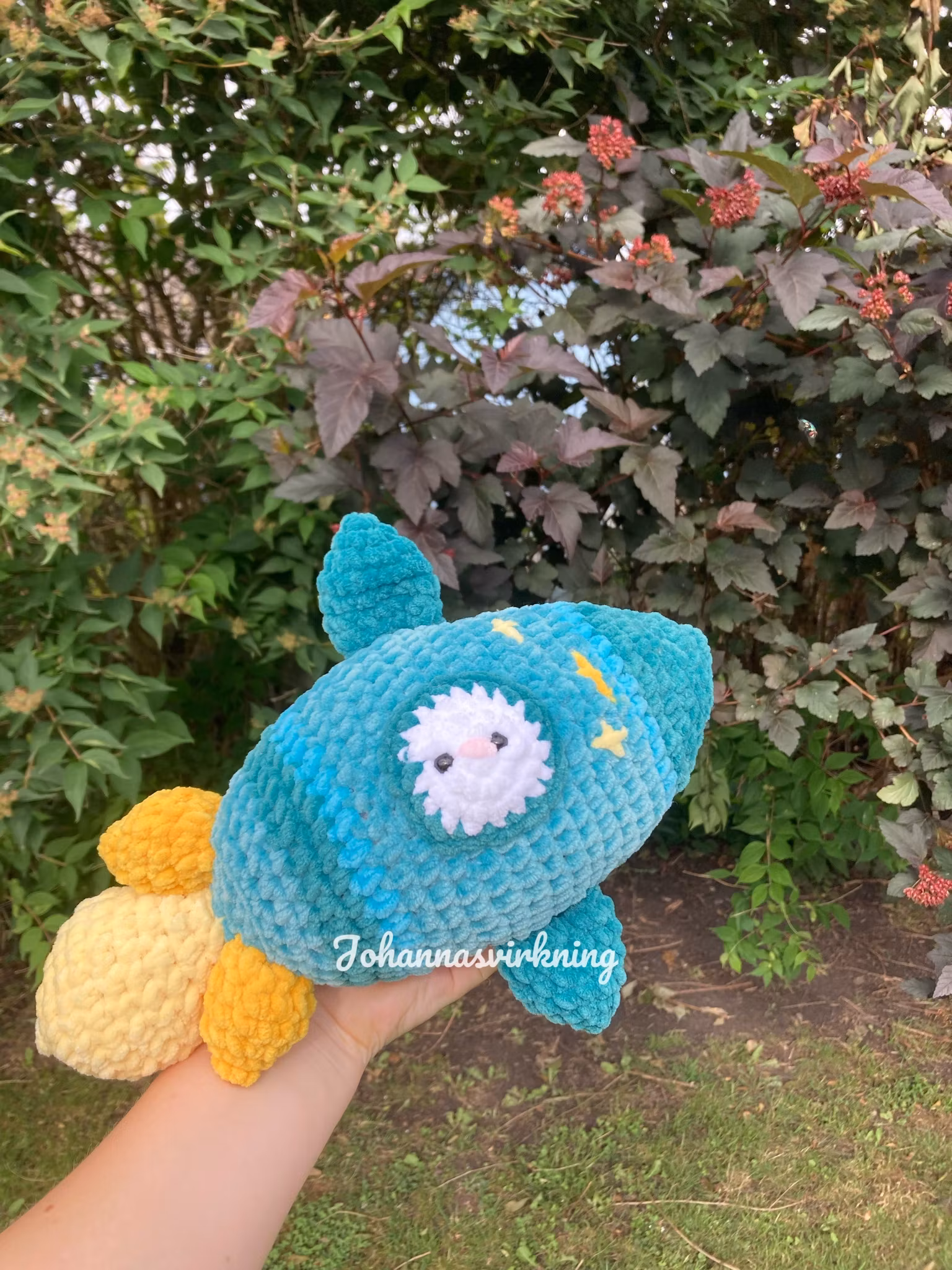 Raket kossan är virkat med mjukt polyester garn och stoppad med polyester, den har även säkerhetsögon av plast.
