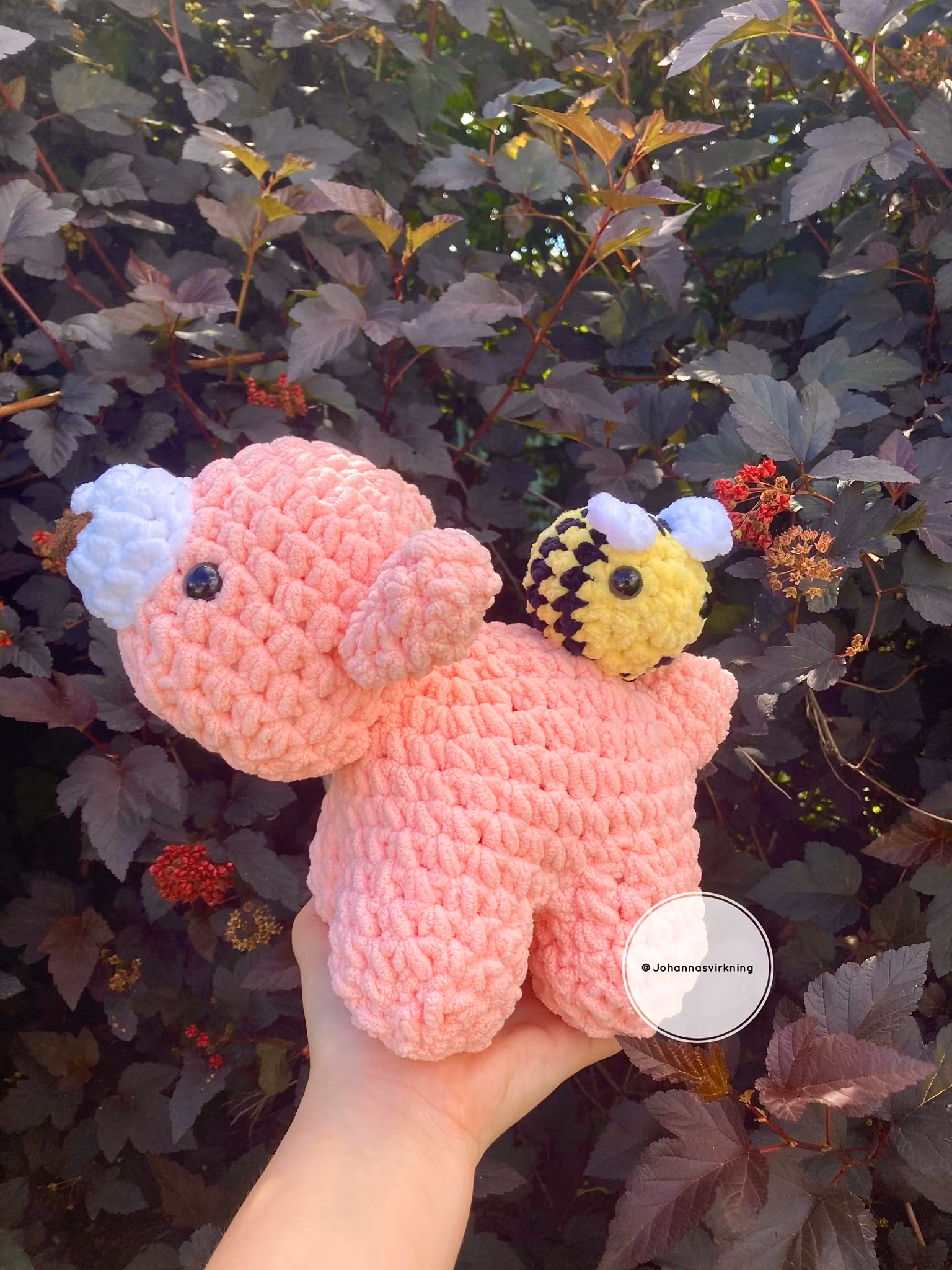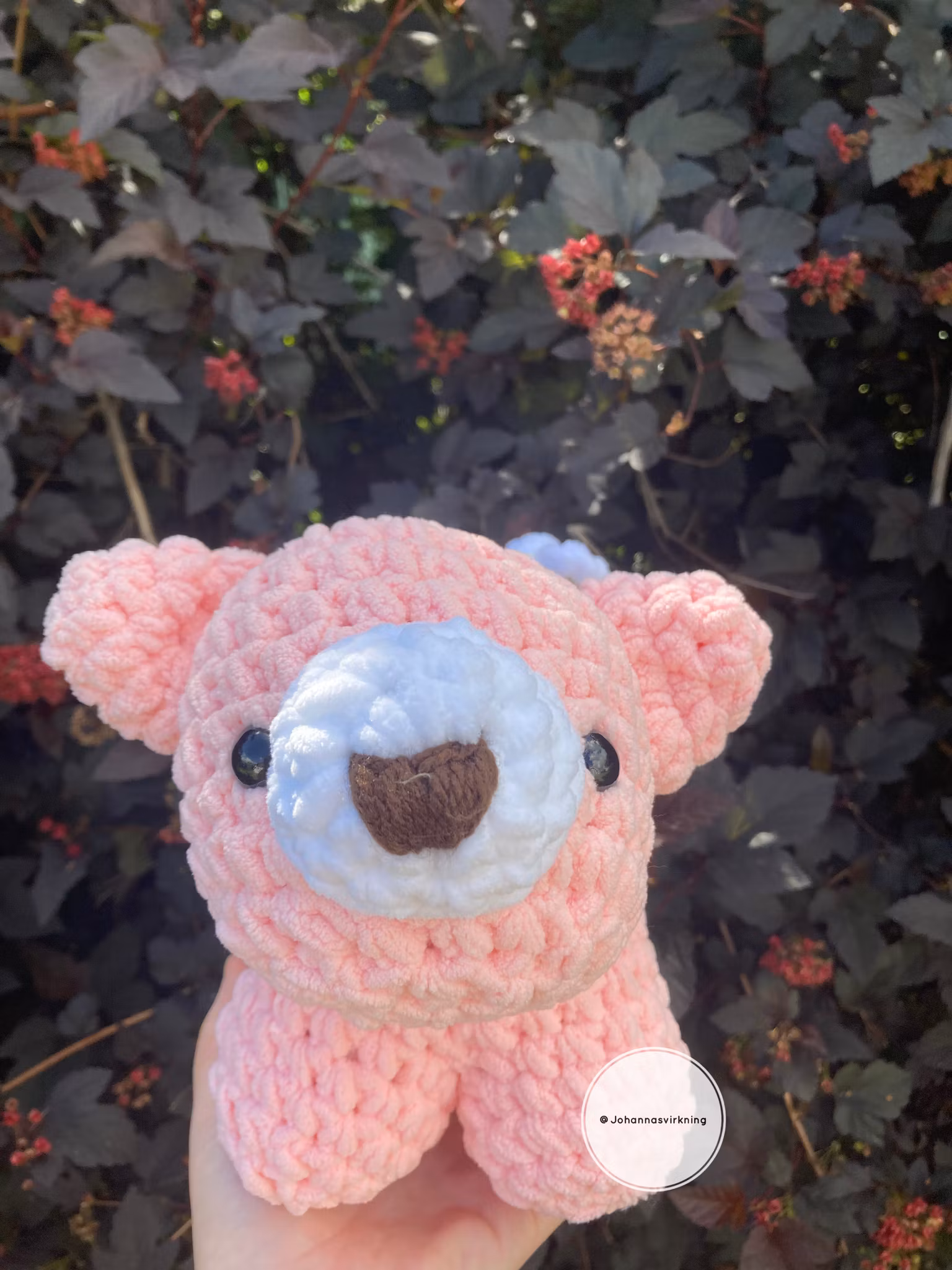 Denna björn är gjord av extra tjockt och gosigt polyester garn. Den står på 4 ben och kommer med ett fast sytt bi.