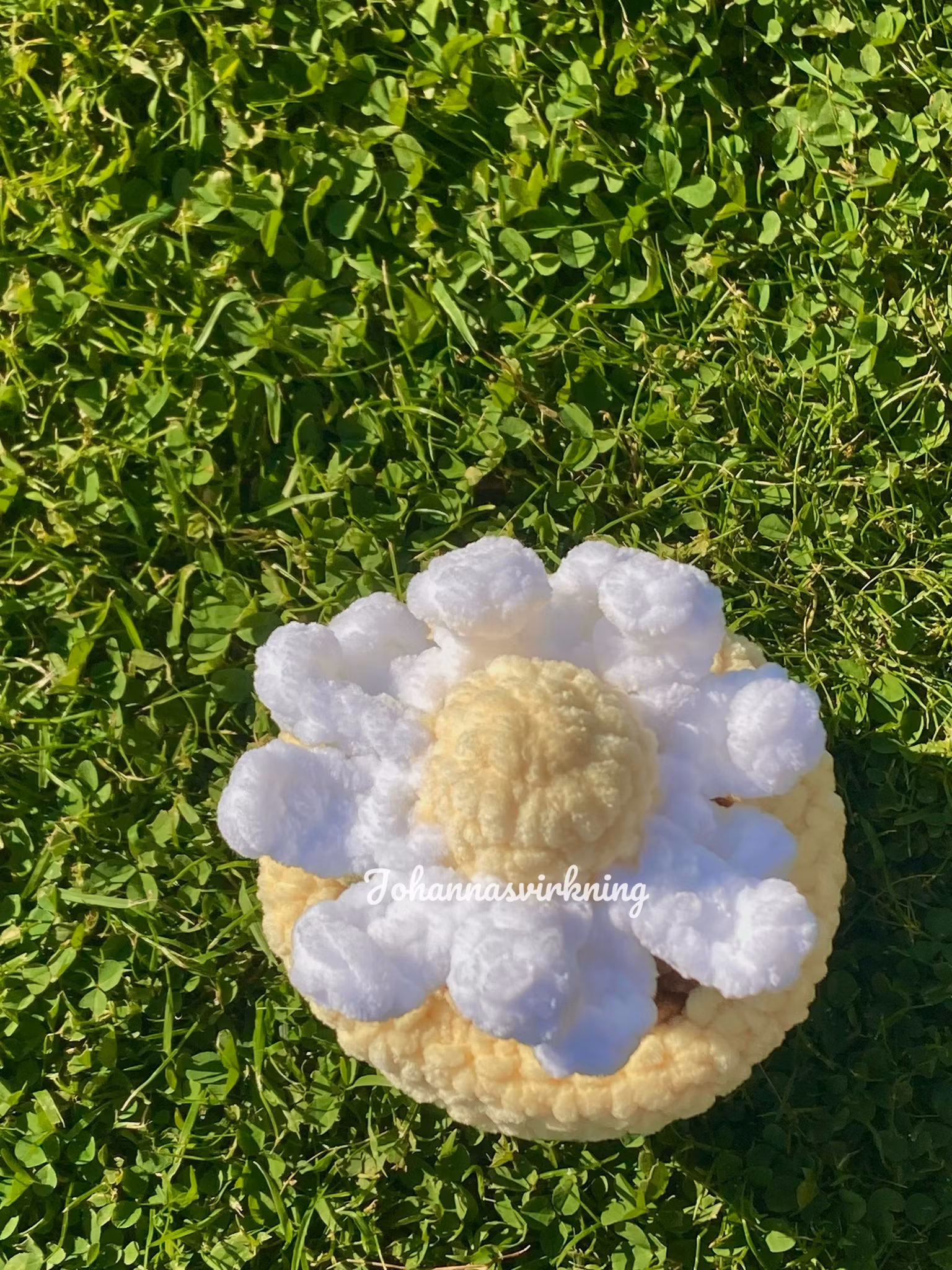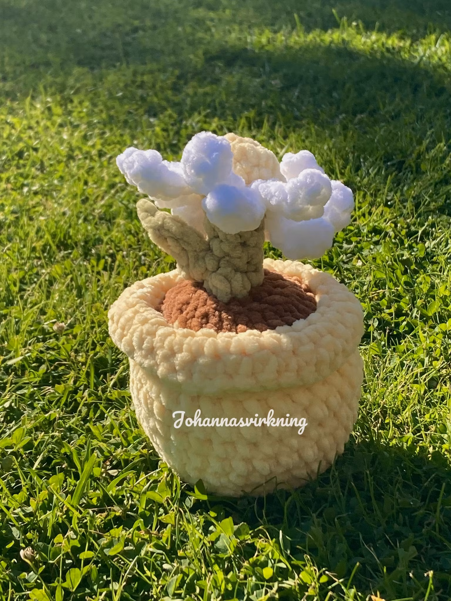 Blomman som inte vissnar! Virkad blomma av polyester garn och stoppad med polyester.