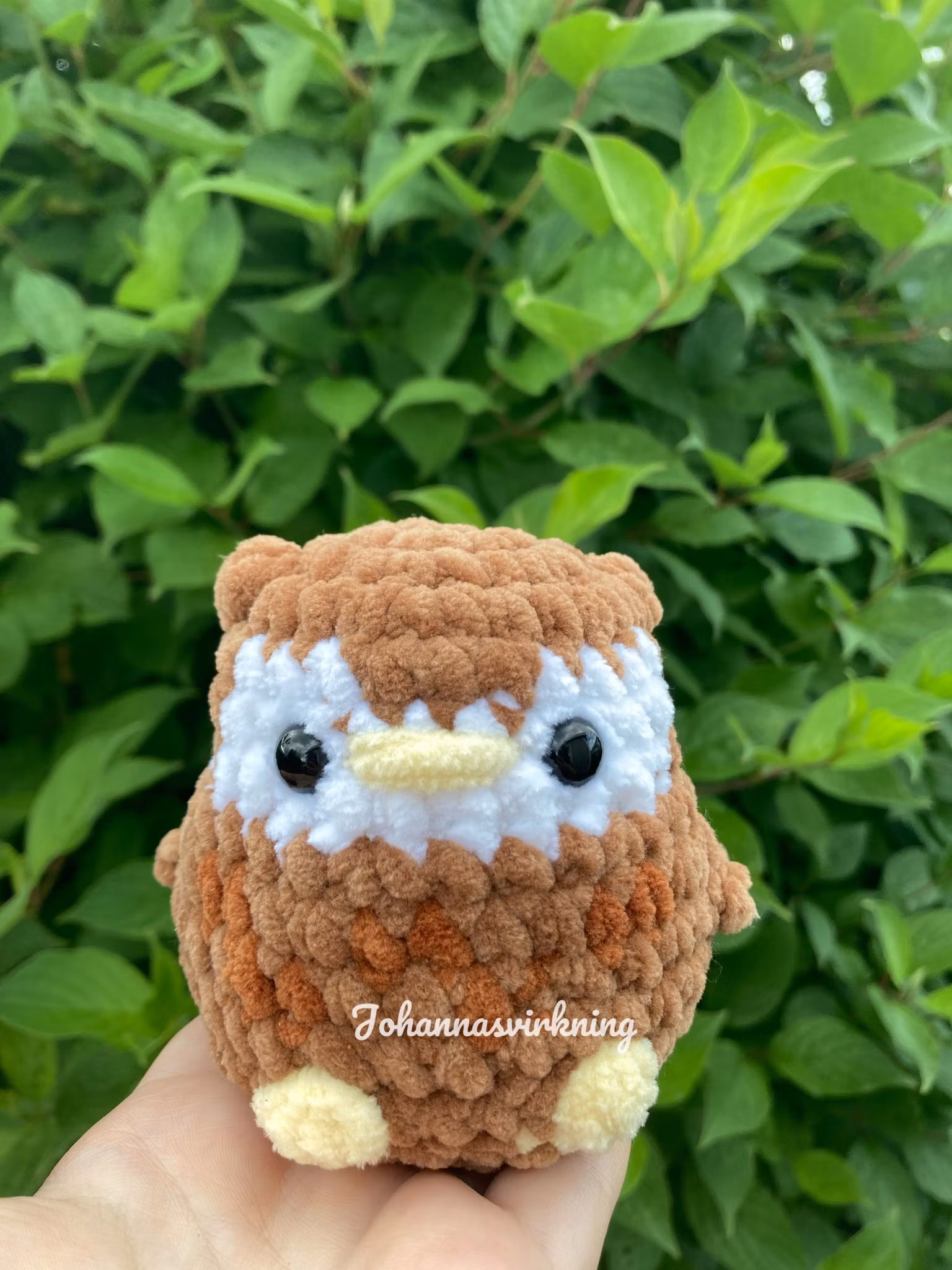 Den här parakiten är virkad av mjukt polyester garn, stoppad med polyester och har säkerhetsögon av plast. Cirka 9 cm lång.