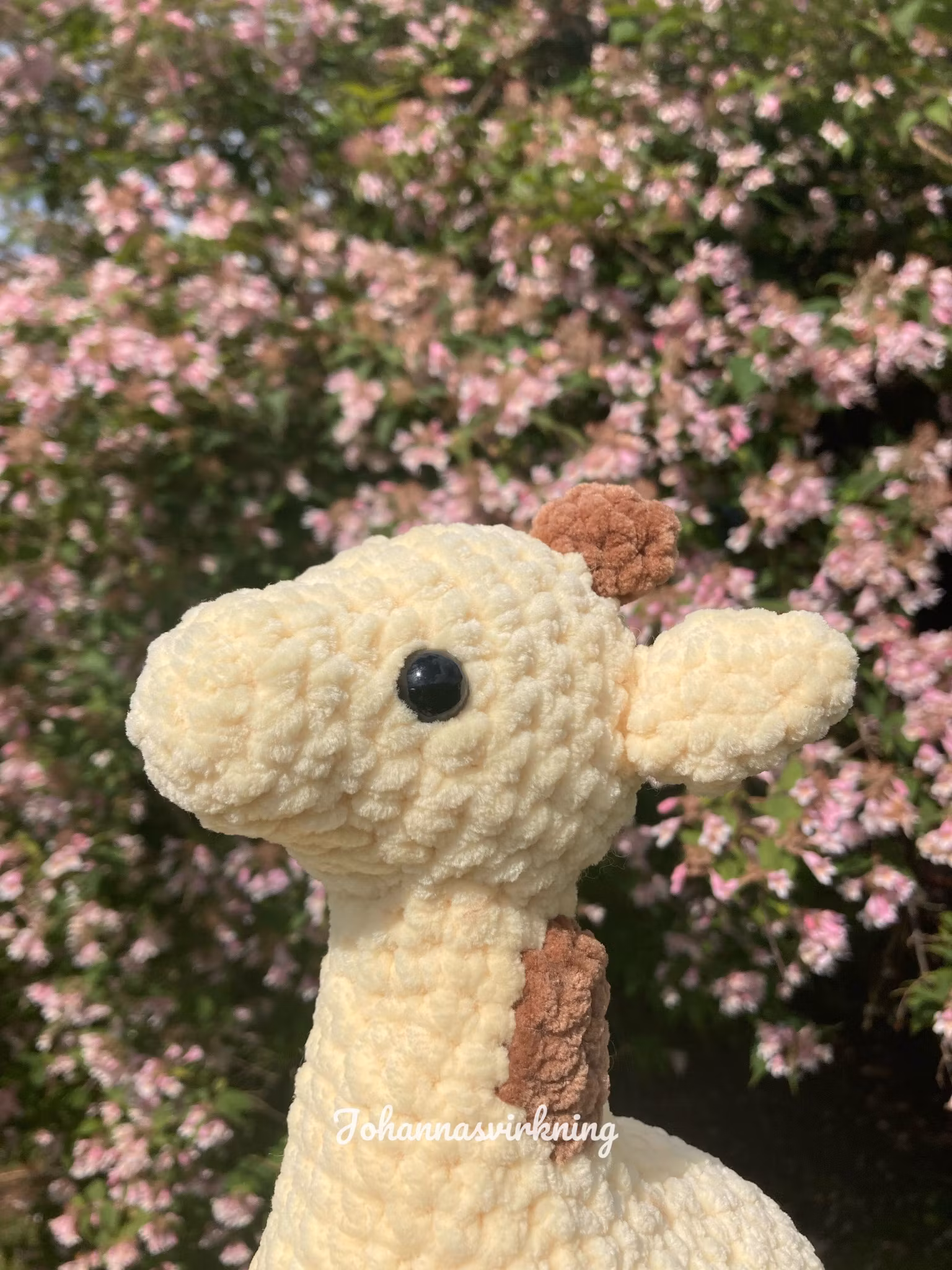 Giraff virkad med mjukt polyester garn, stoppad med polyester och har säkerhetsögon av plast.