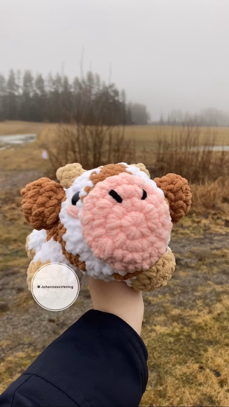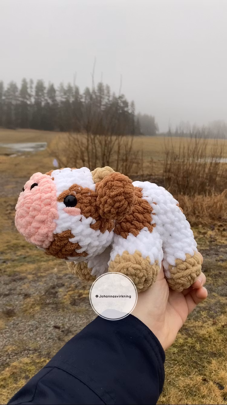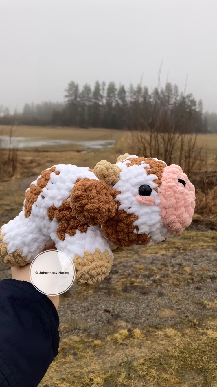 Den här kossan är virkad av mig med mjukt polyester garn.