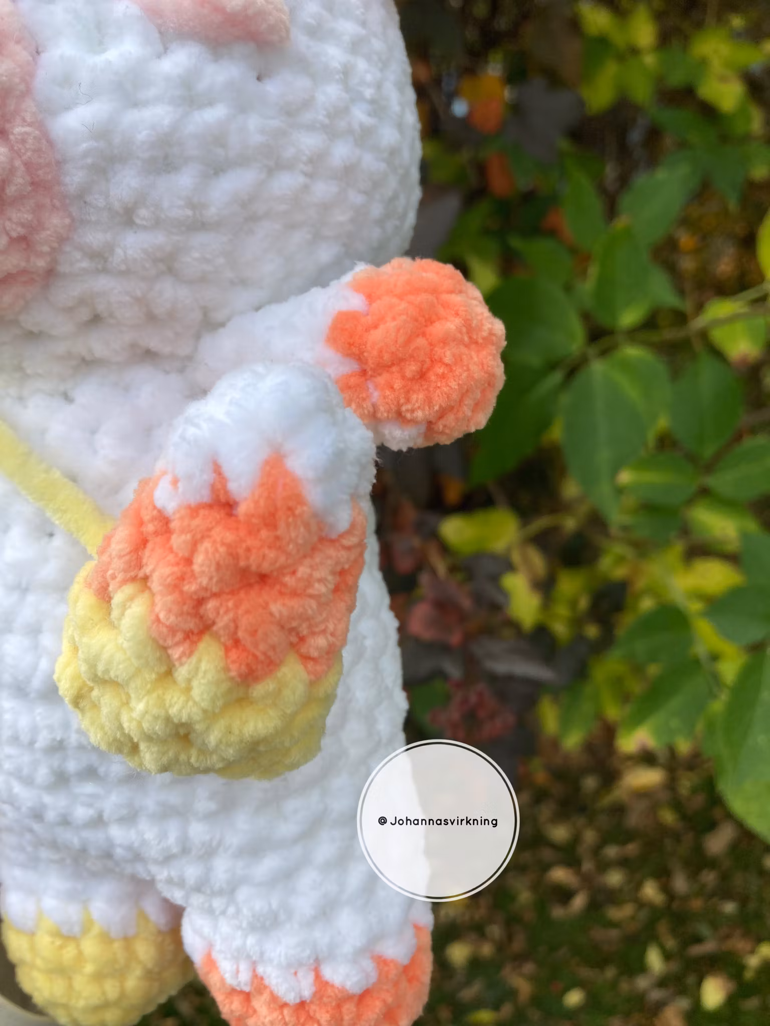 Den är virkad av mig med polyester garn, polyester stoppning och säkerhetsögon av plast.