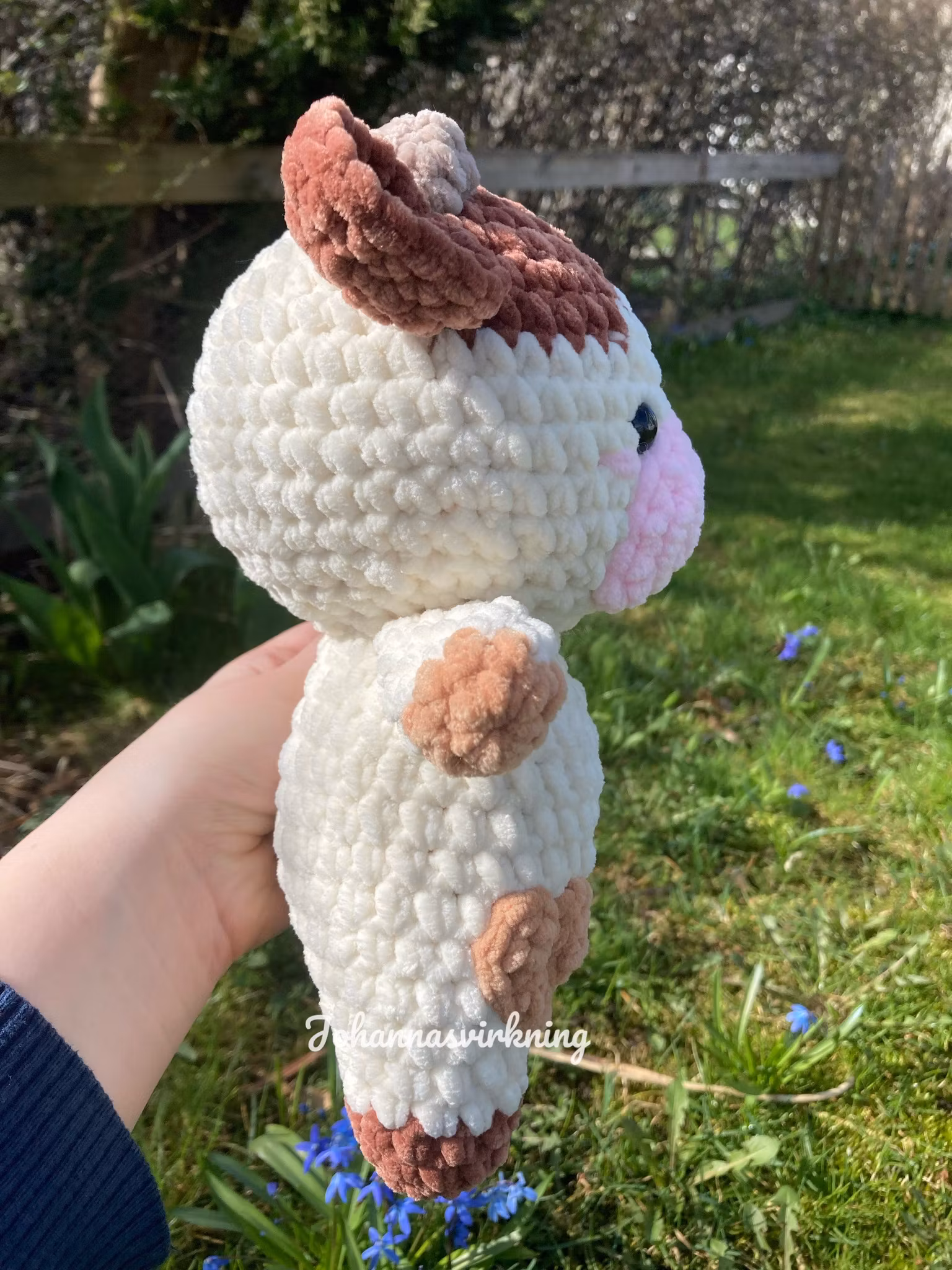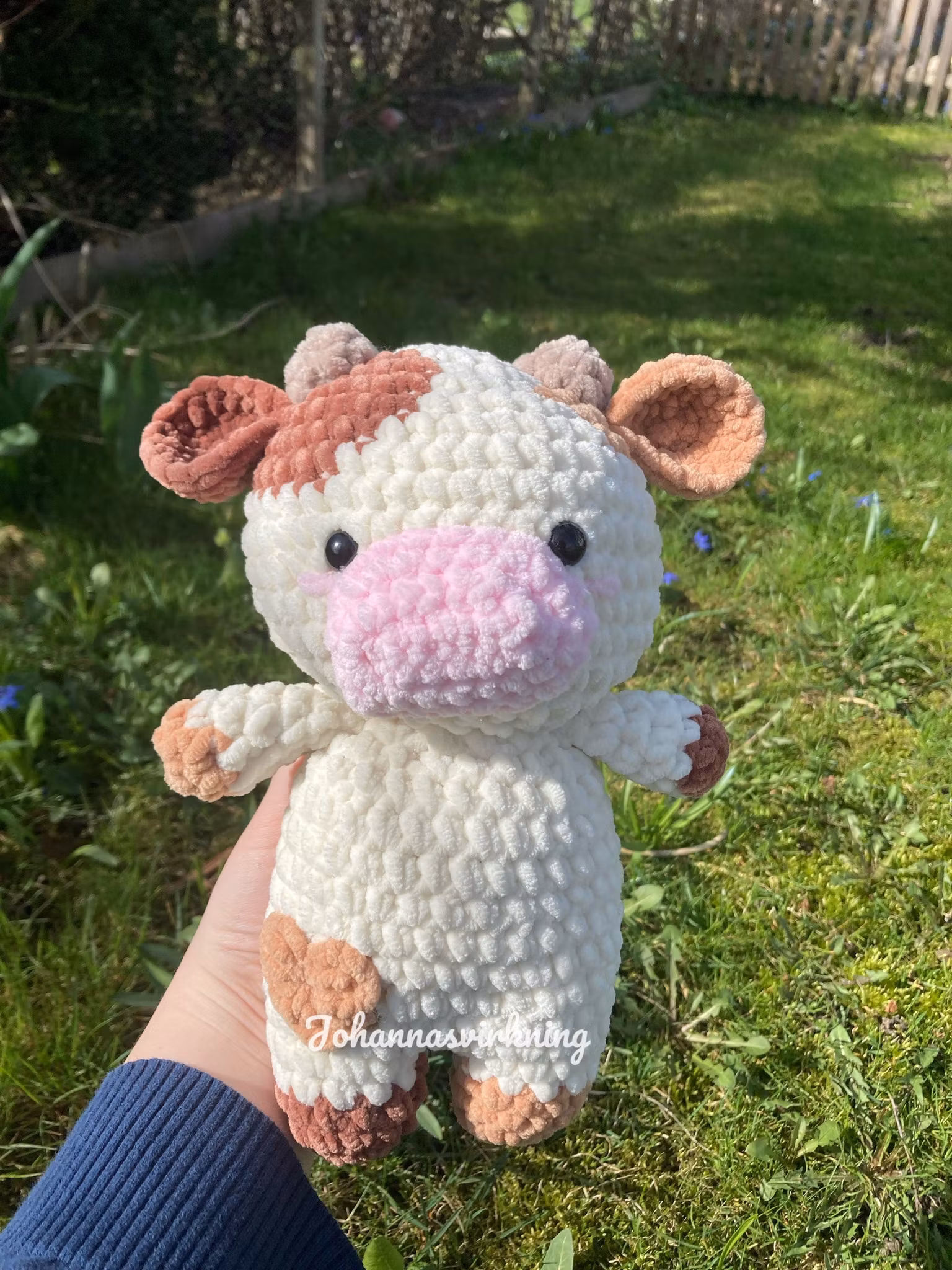 Denna gulliga ko är 26 cm lång och gjord av mjukt 100% polyester garn. Kommer också med en namnlapp med ett unikt och gulligt namn.