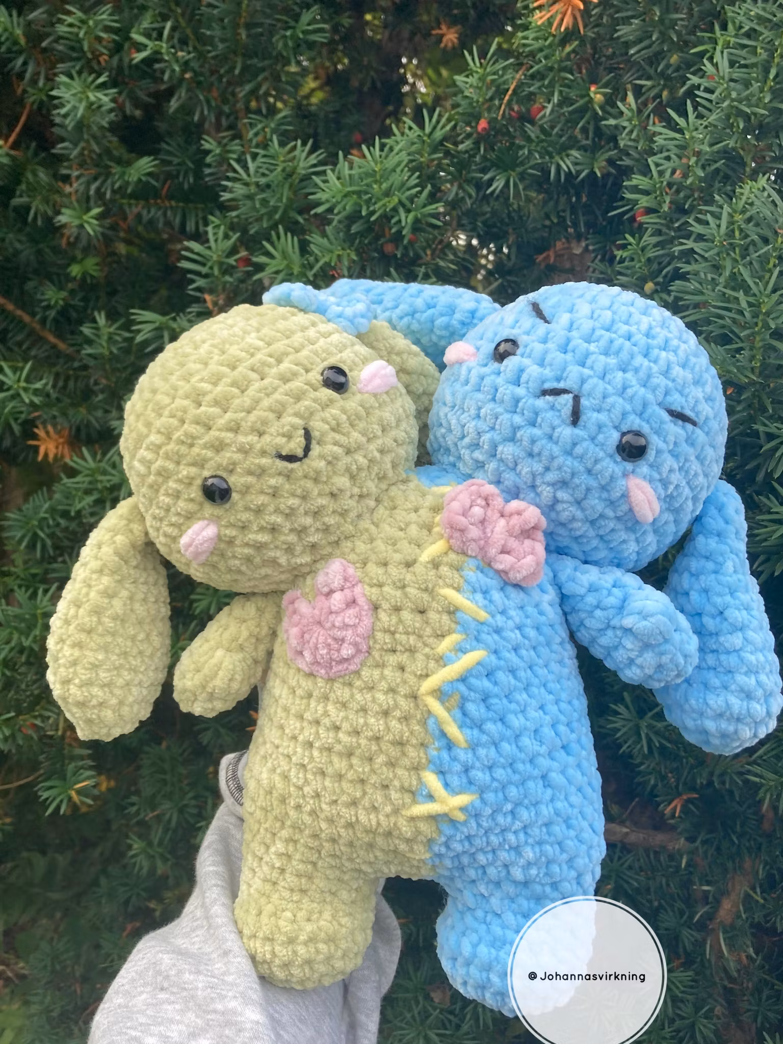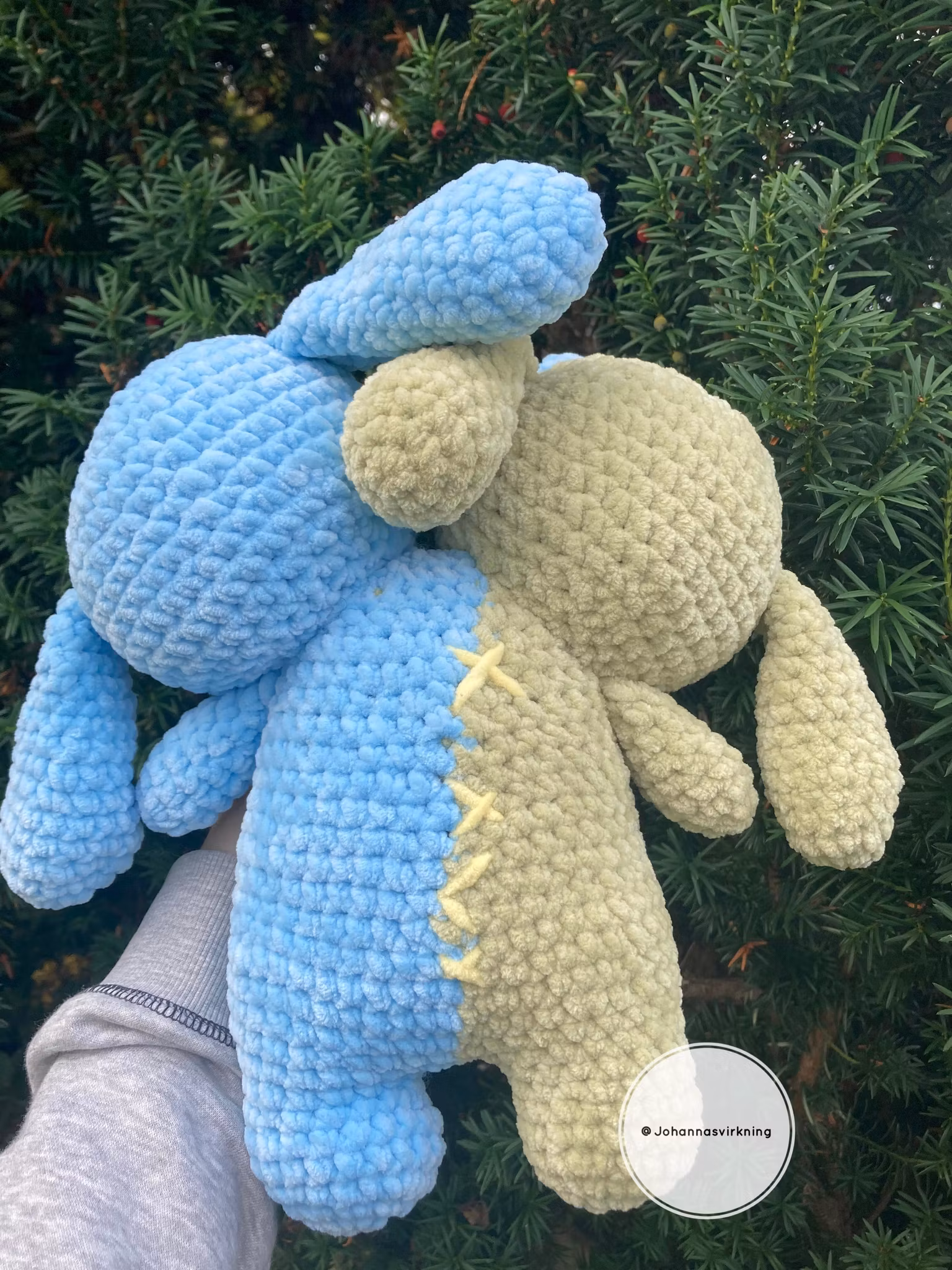 Virkad med 100% polyester garn och stoppad med polyester stoppning. Säkerhetsögon av plast.