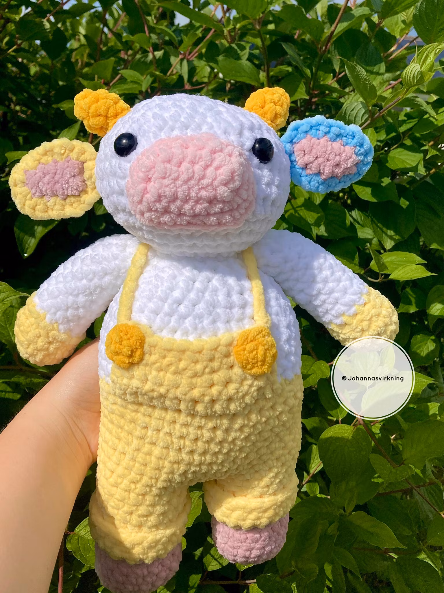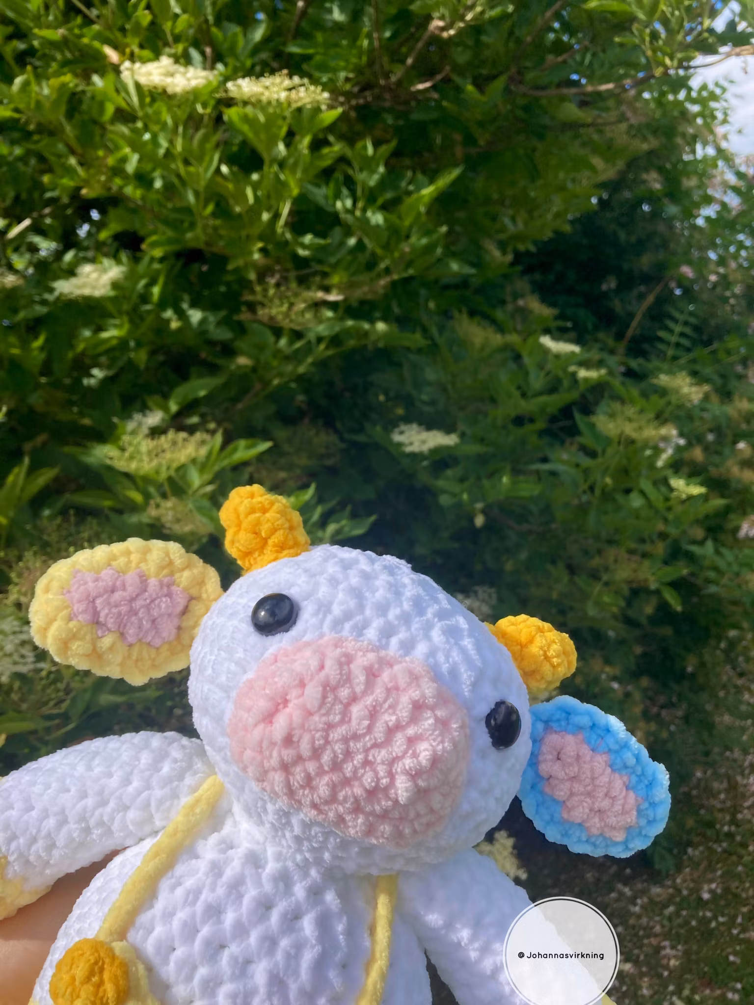 Denna ko är inspirerad av soliga sommar dagar. Den är 37 cm lång och är gjord av 100% polyester garn vilket gör den extra gosig. Kommer med en namnlapp med ett unikt namn. OBS: håll utom räckvidd av barn under 3 år och djur.