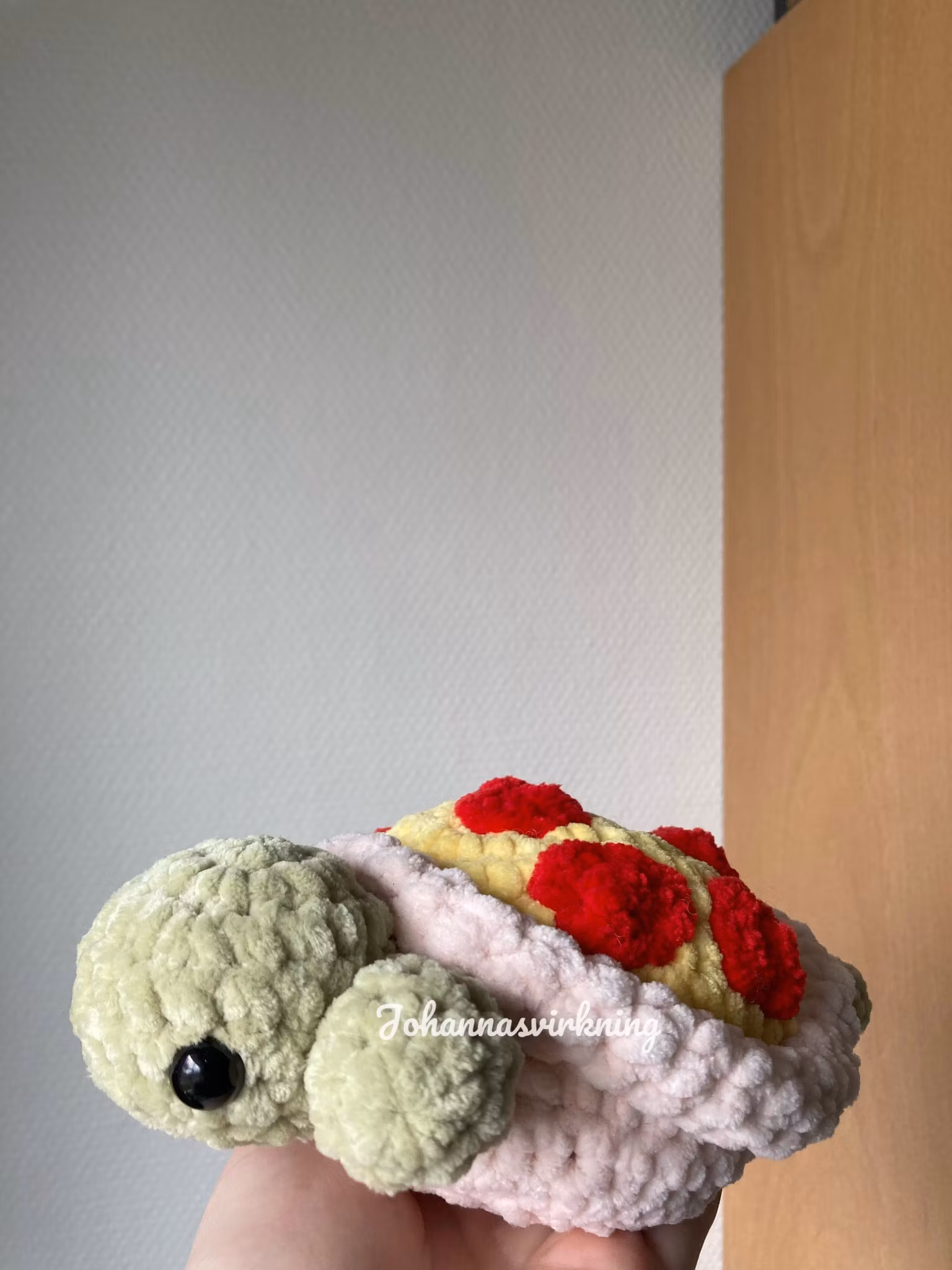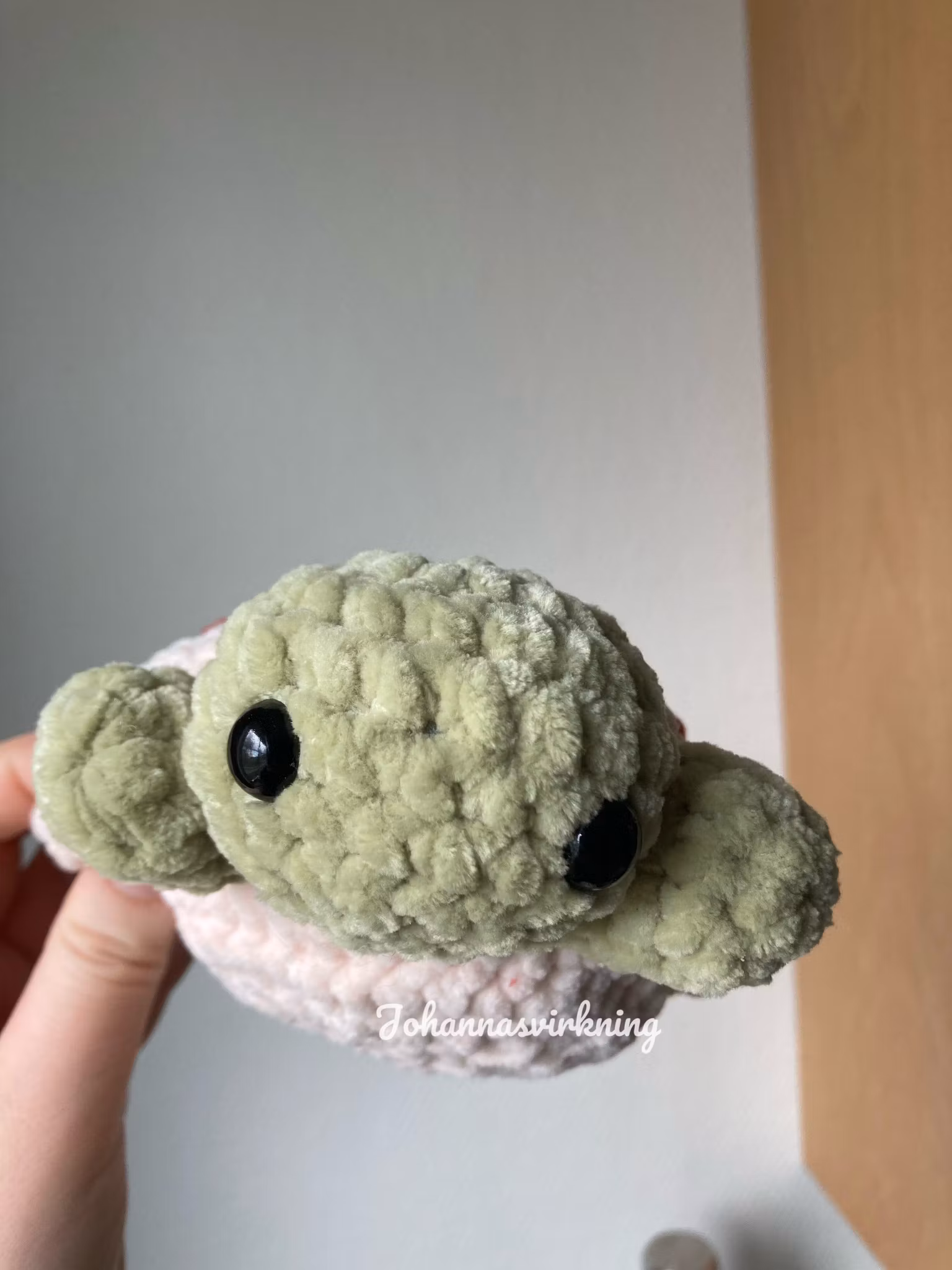Den är virkad med mjukt polyester garn, har säkerhets ögon av plast och stoppad med polyester stoppning.