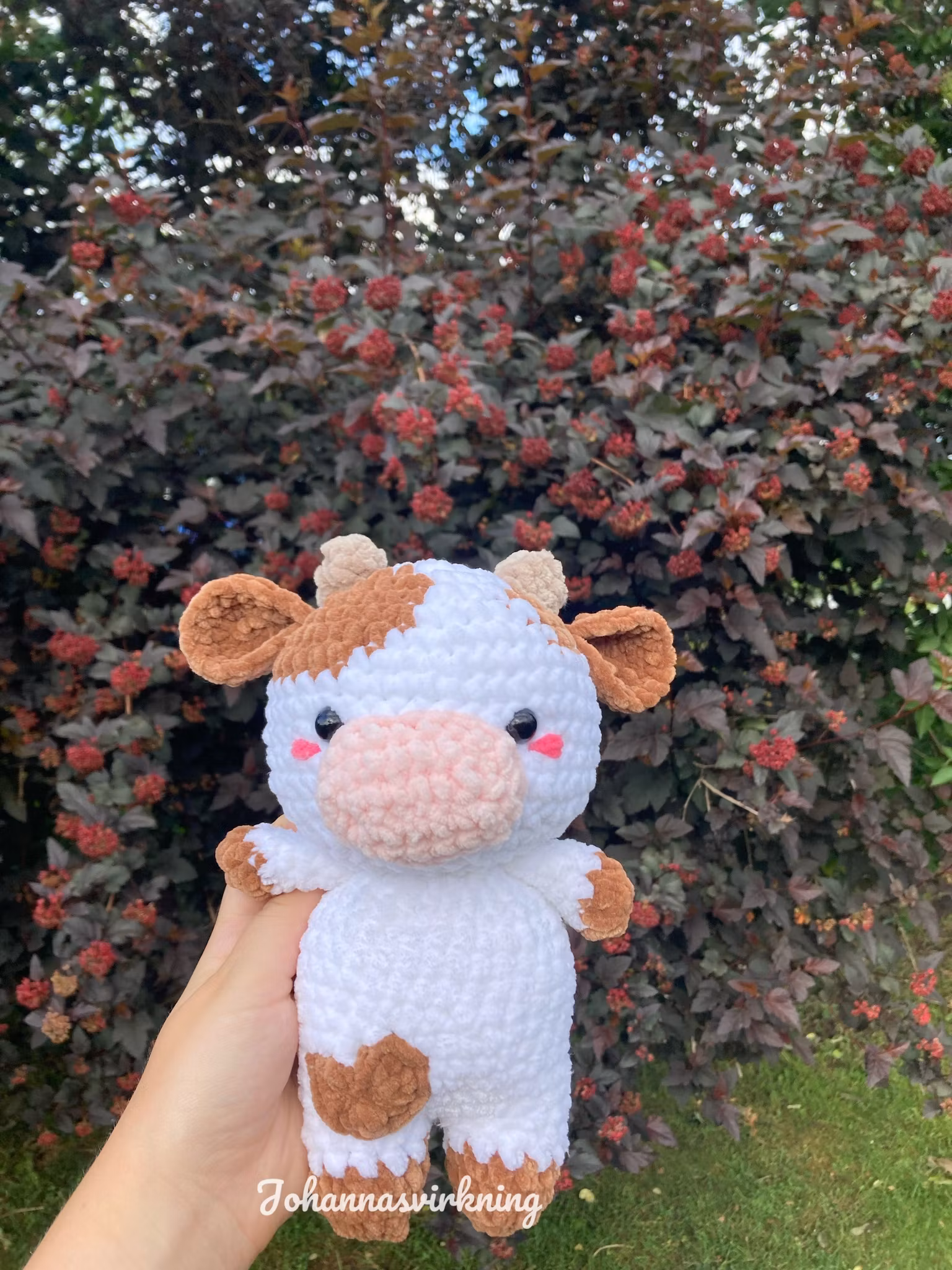 Denna gulliga ko är 26 cm lång och gjord av mjukt 100% polyester garn.
